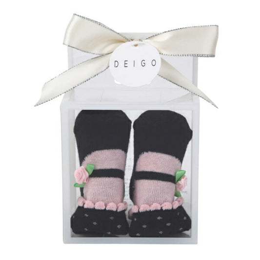 プレゼントソックス プティローズ ブラック 6338 DEIGO 赤ちゃん ベビーソックス 新生児 ベビー 誕生日 御祝 出産祝い ギフト プレゼント