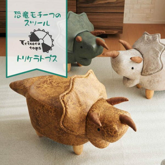 恐竜モチーフのスツール Triceratops Jr. トリケラトプスジュニア カーキ EF-ST09KHJ アンファンス 北欧 スツール いす 椅子 足置き オットマン インテリア チェア プレゼント ギフト
